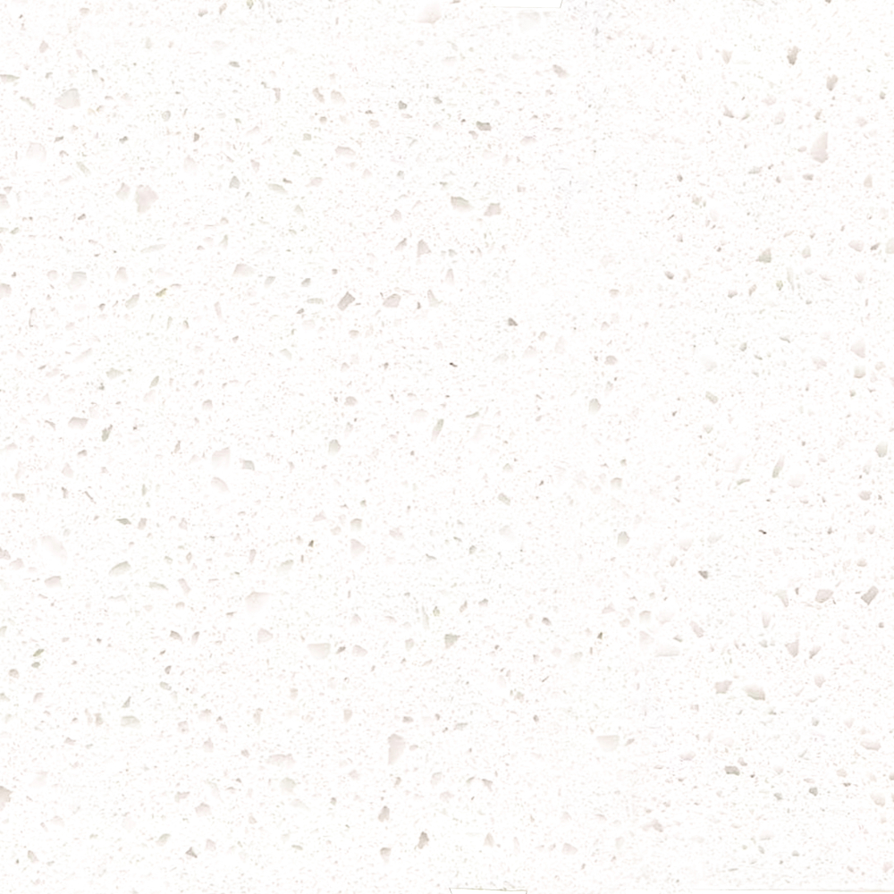 El cuarzo Beach White tiene un fondo blanco con pequeñas partículas que le dan carácter a la piedra entregando una superficie luminosa, con fuerza y carácter para todo tipo de espacio.